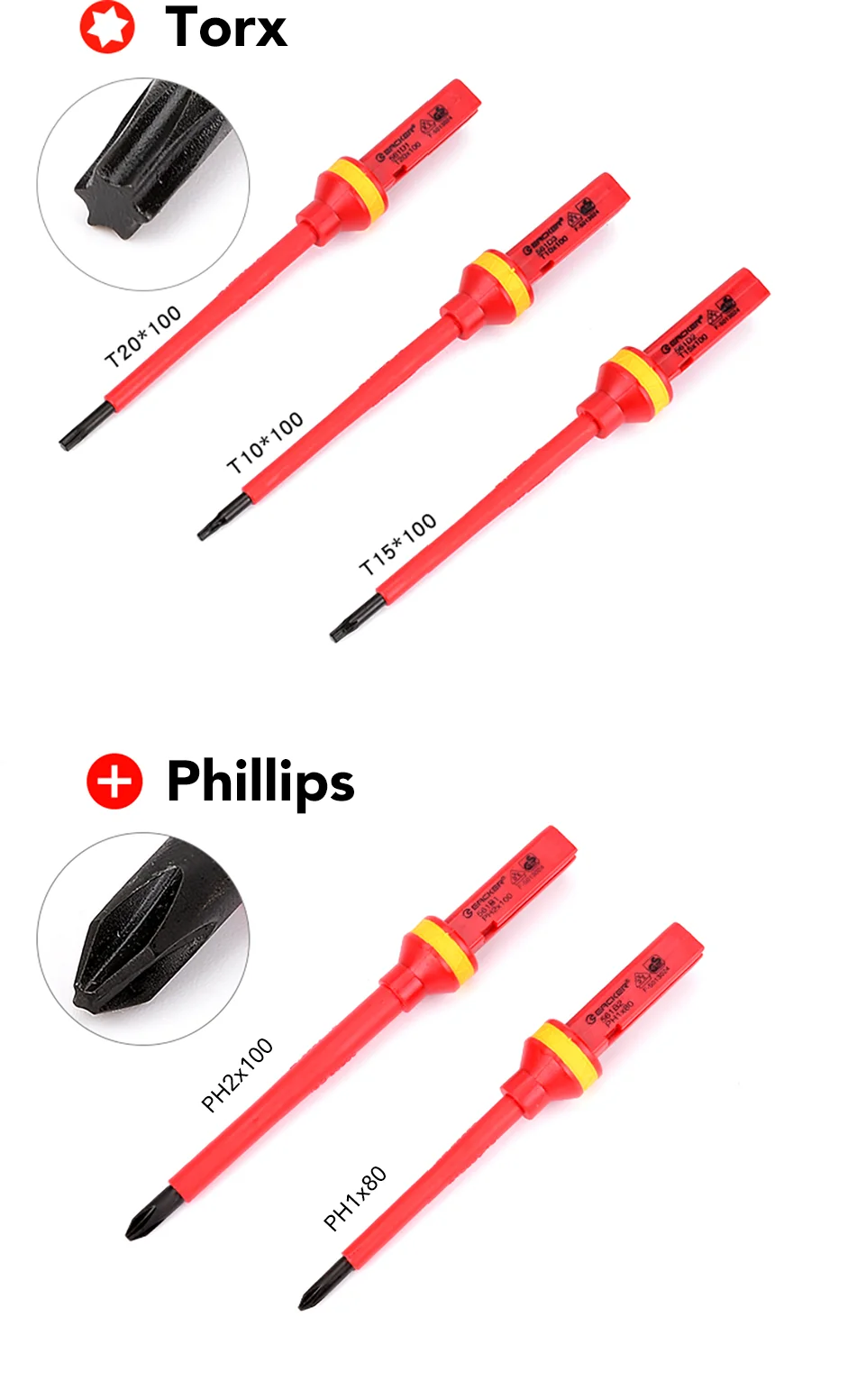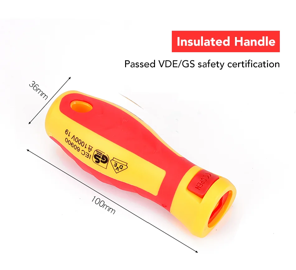 Insulated bits for Electrical applications, Protects from electric shock up to 1,000 volts.