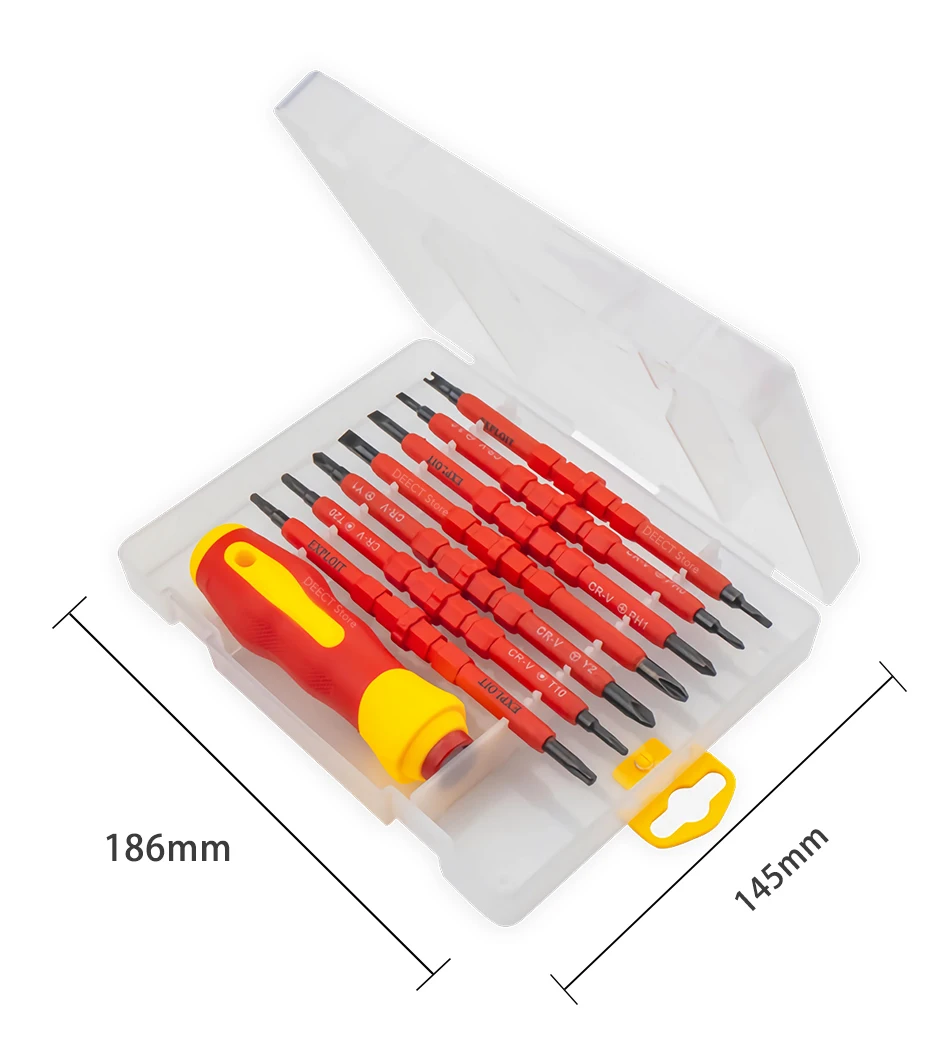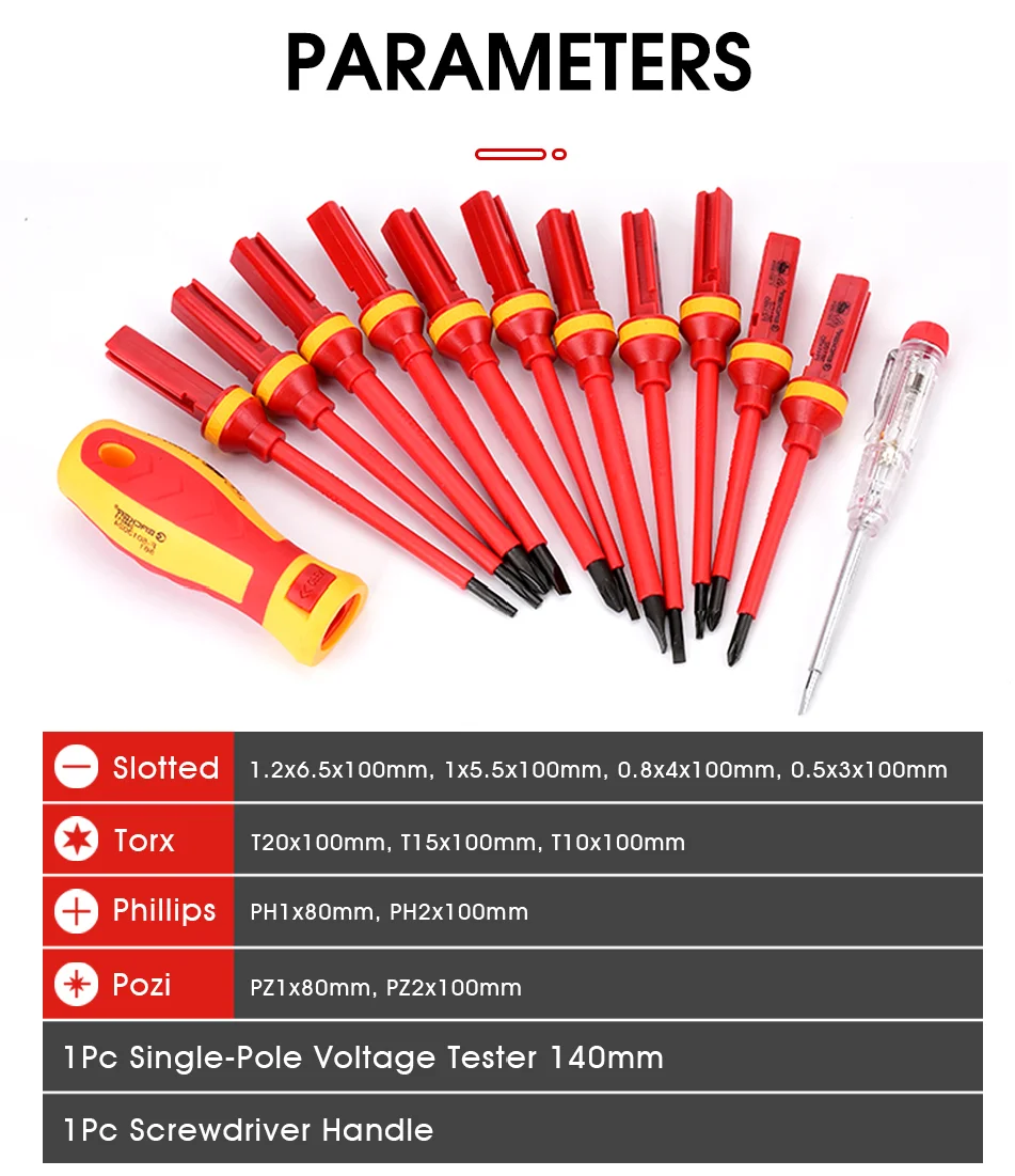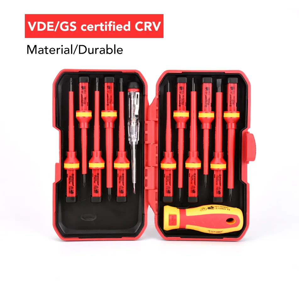 Electrician Repair Tools Kit 13pcs 1000V Changeable Insulated Screwdrivers Set with Magnetic Slotted Phillips Pozidriv Torx Bits